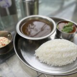 シルバーのグラスにたっぷりと入ったラッシーはとてもしずる感があり、暑い日にぴったり。飲んでみると思った以上に甘く、おいしい。少しヨーグルトの固形感を感じるほど濃厚なラッシーでした。そして、口の中の辛さがぶっ飛び、一気に和らげてくれます。お口直しにもぴったりですね。